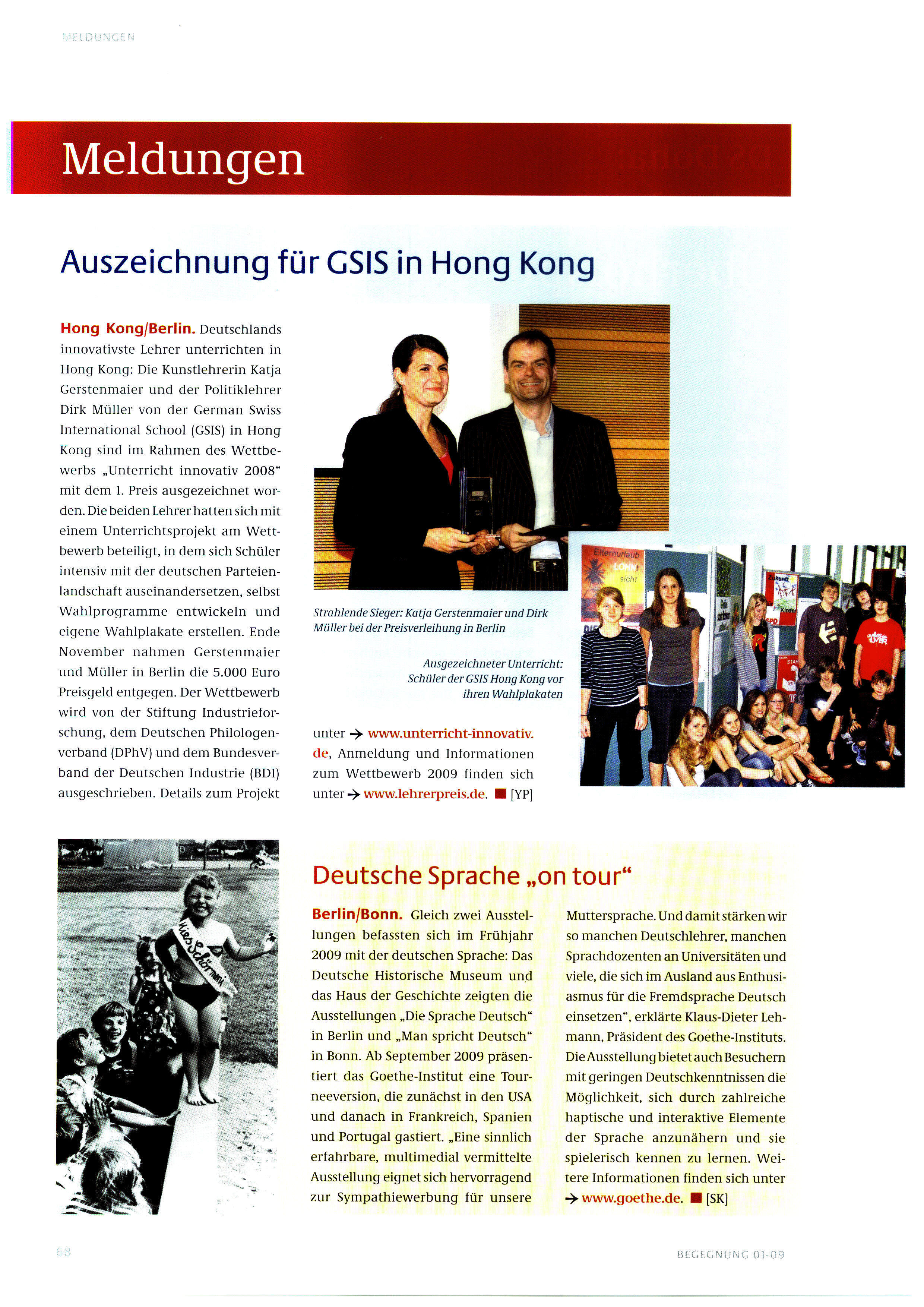 Bericht in der Zeitschrift BEGEGNUNG (Auslandsschulwesen)